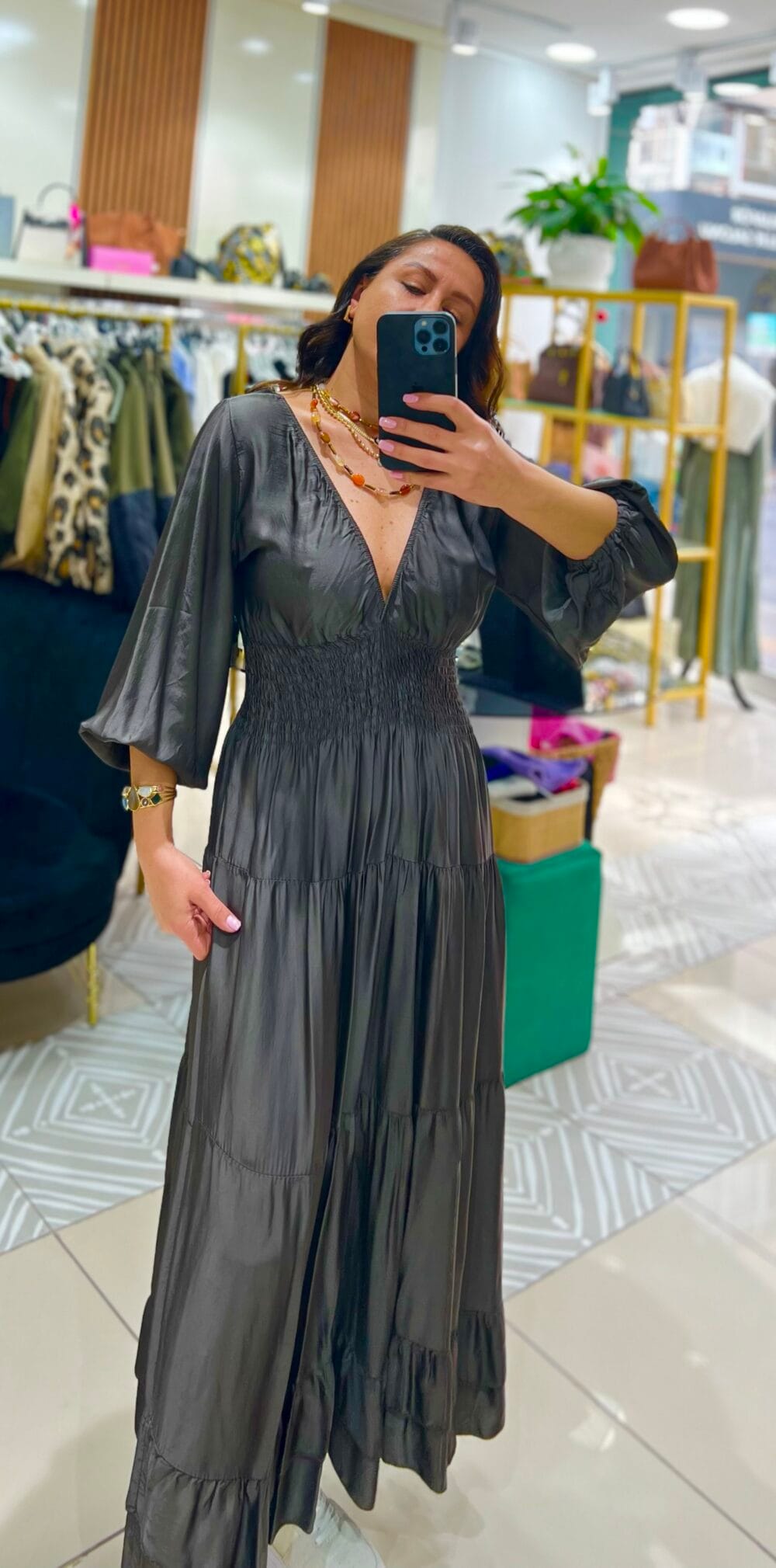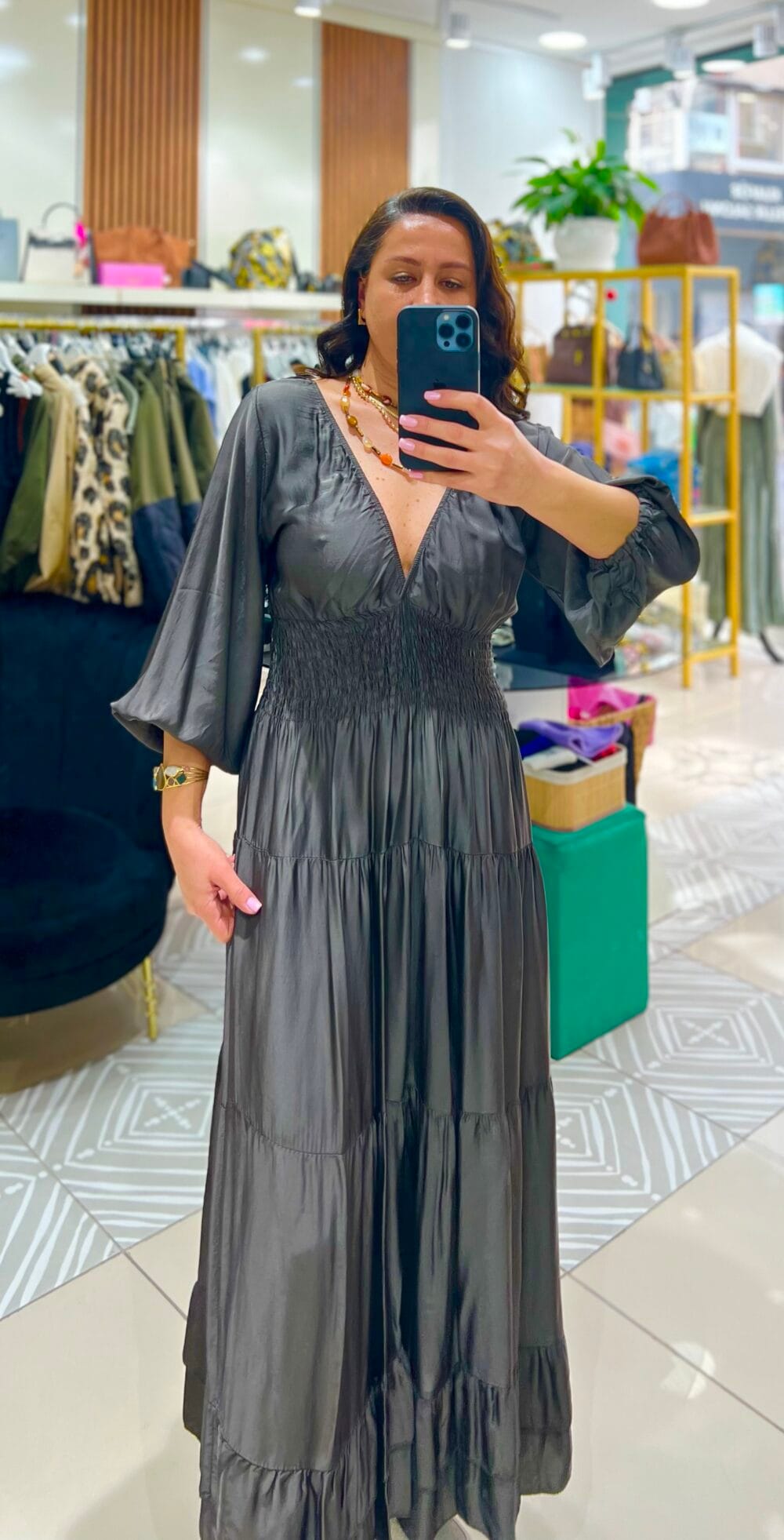“Duman Gri İpek Saten Beli Lastikli Elbise” için yorum yapan ilk kişi siz olun