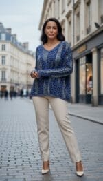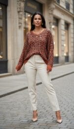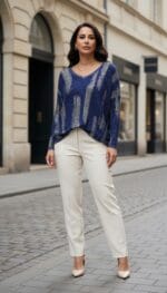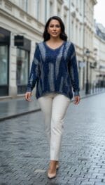 İthal Sim Desenli V Yaka İnce Triko-Standart Beden