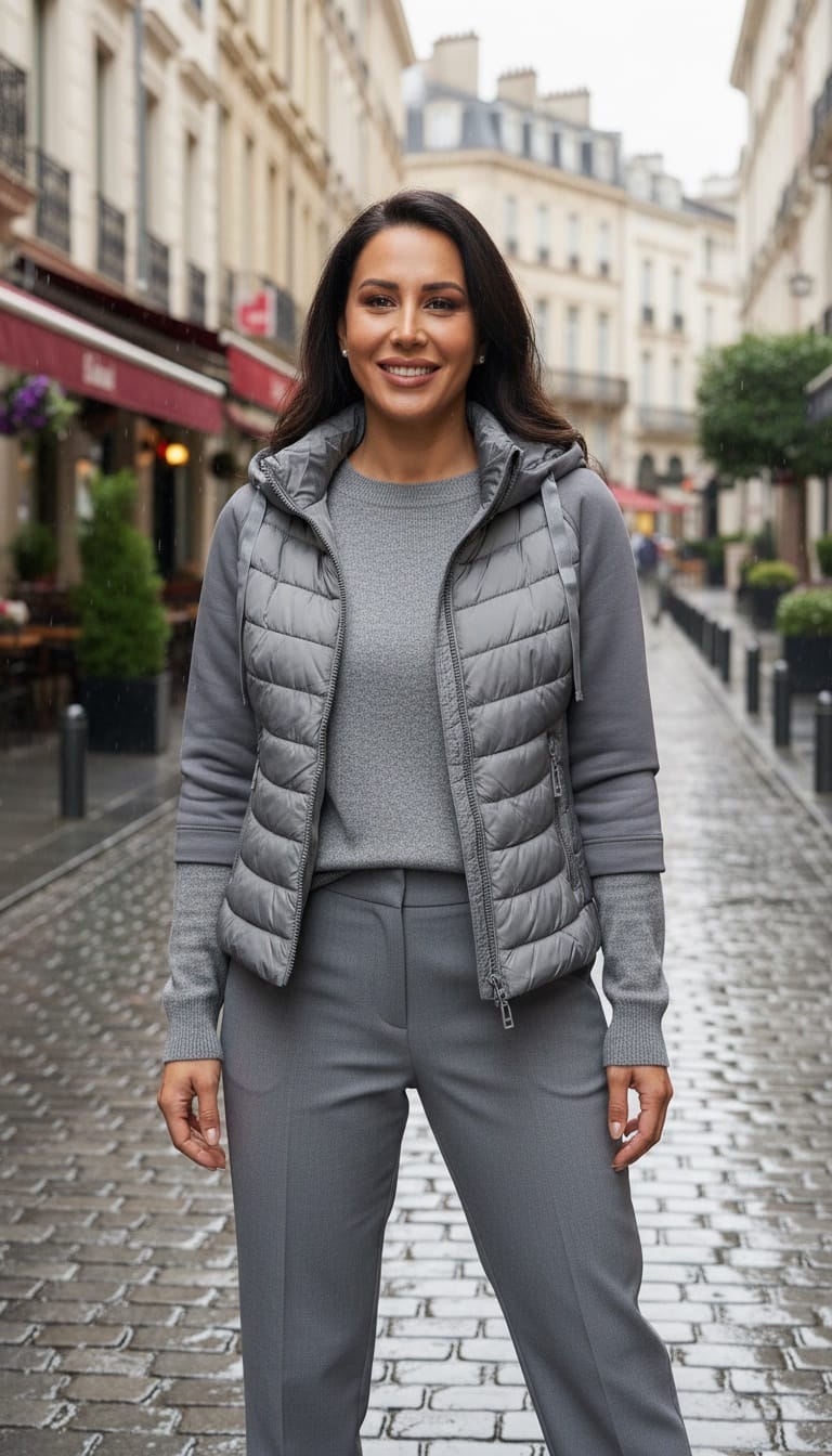 • Hibrit Tasarım (Önü Kapitoneli/Şişme): Montun ön kısmı (göğüs ve karın bölgesi) yatay dikişli, hafif şişme (kapitoneli) bir yapıya sahip. Bu, hem modern bir görünüm katıyor hem de ekstra ısı yalıtımı sağlıyor.