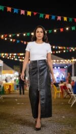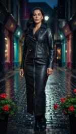 • Moda Vurgusu: Total Black Urban Chic: Biker Ceket ve Uzun Etek Takımı